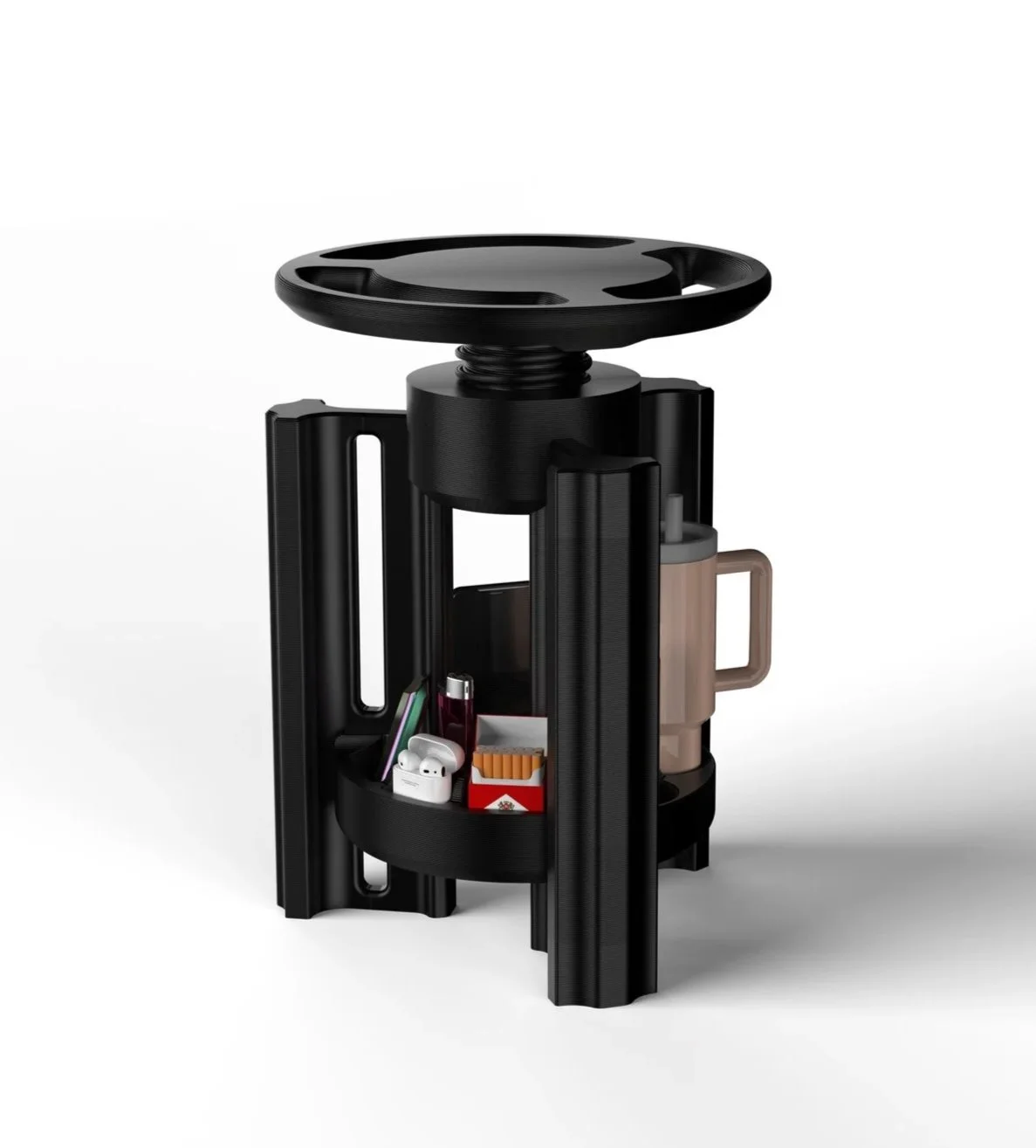 To create a 3D-printed stool that translates the compact utility and emotional attachment of car interiors into a domestic object; combining structure, storage, and mobility through DFAM principles, efficient packaging, and modular design.