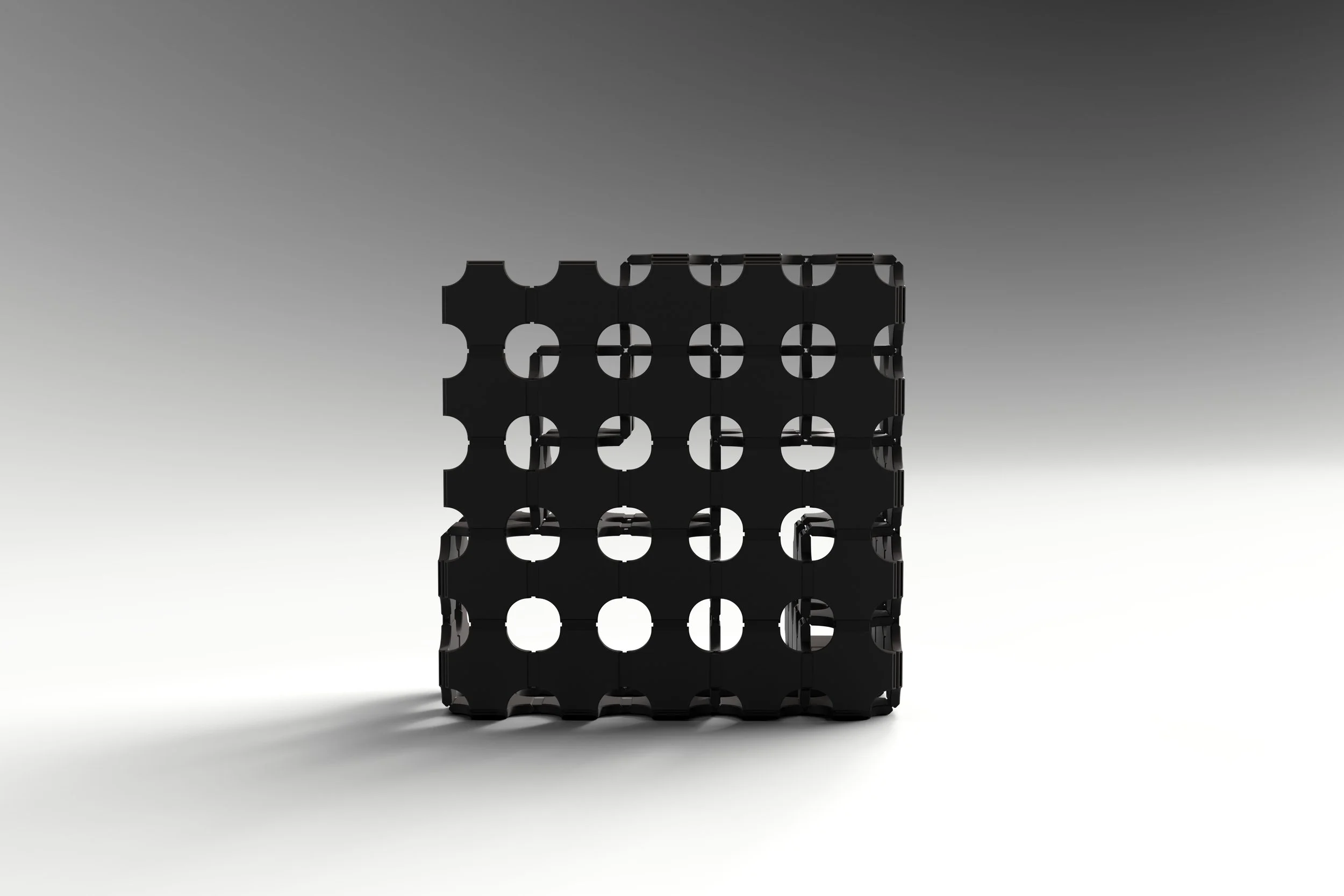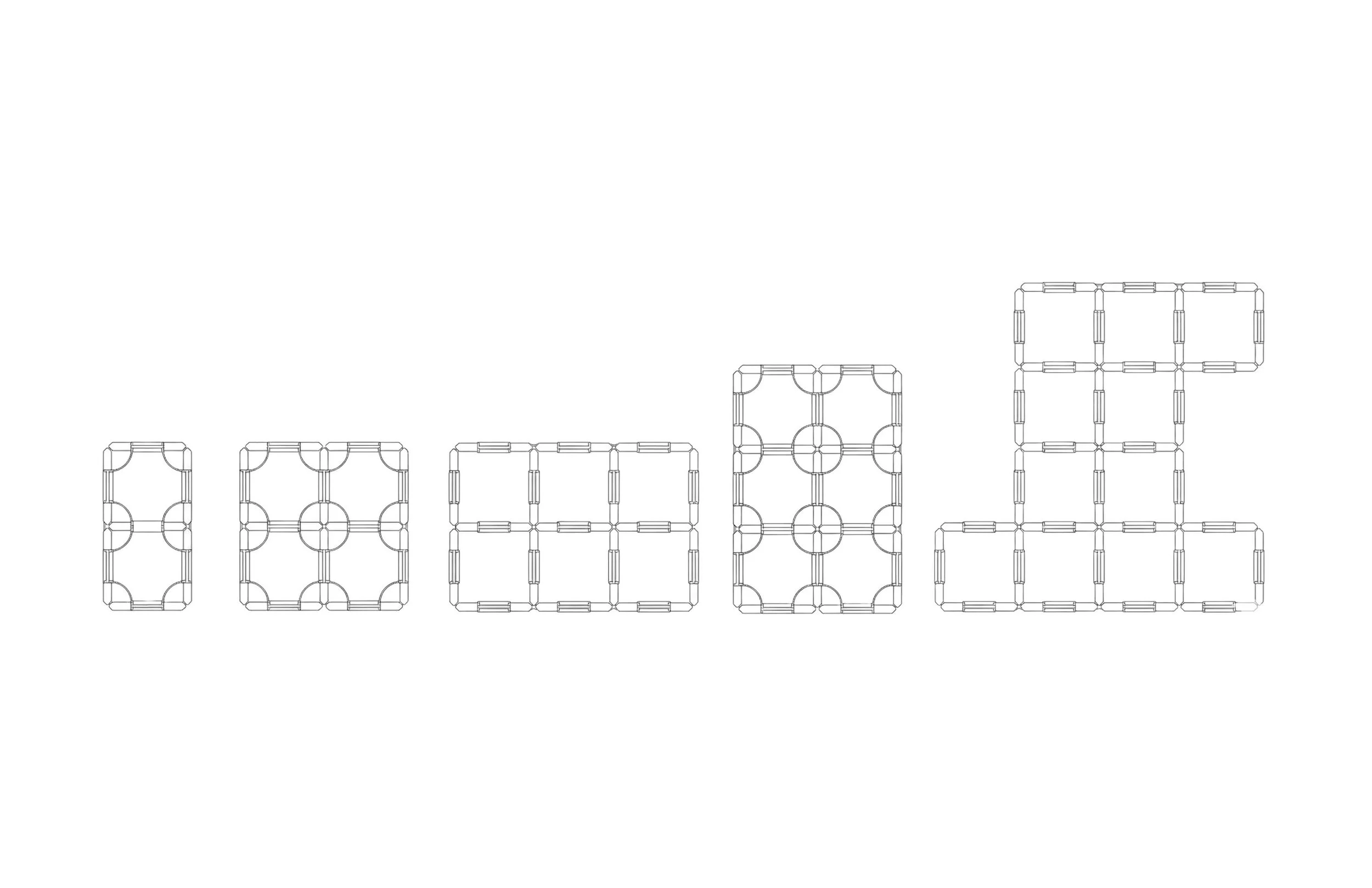 Each plate features connection points on all four sides, allowing users to insert joints and infinitely expand the structure into endless configurations.