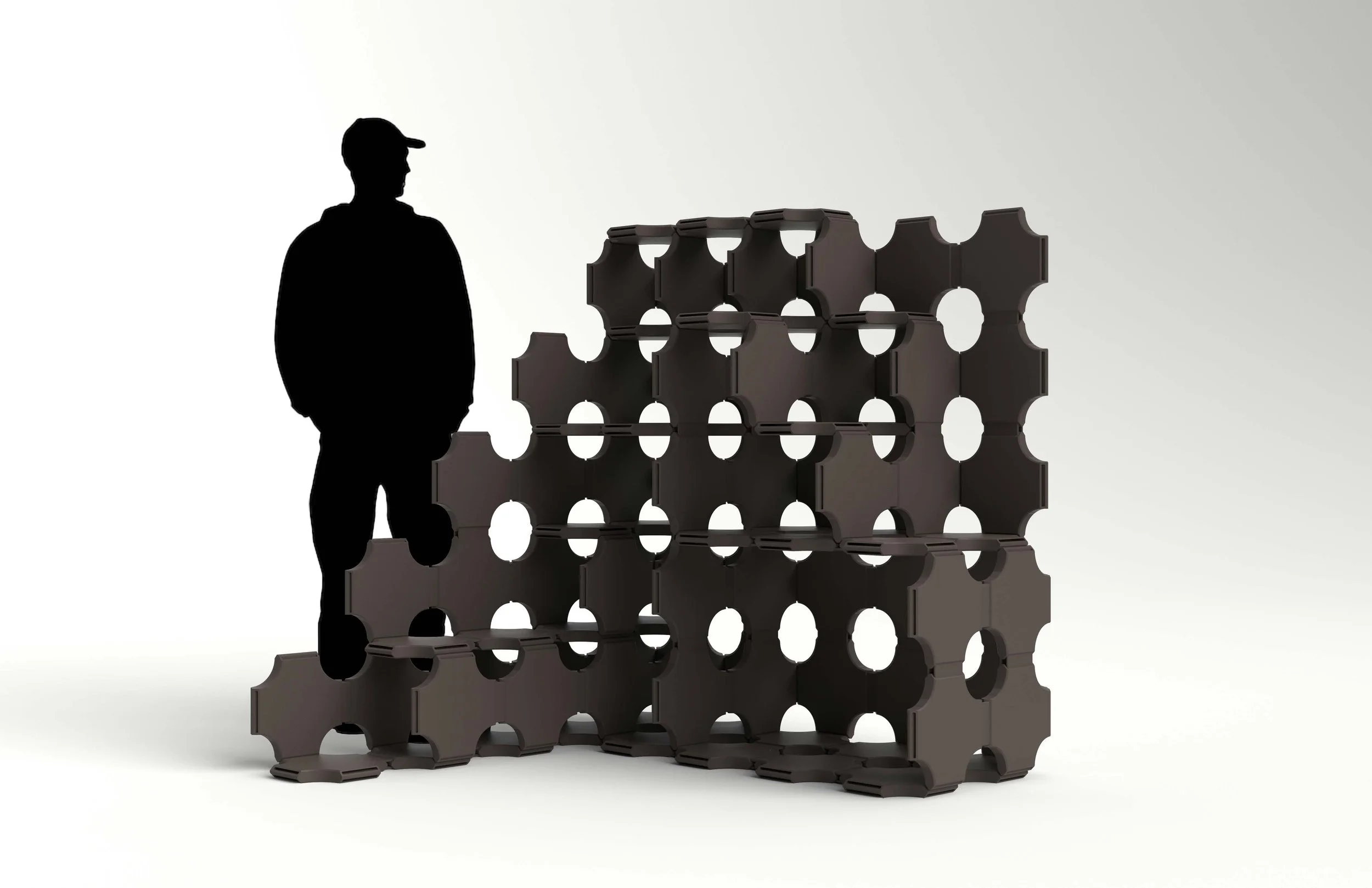 MASON is a 3D-printed modular furniture system designed for brand SLIIT. The system is versatile to create bookshelves, stools, and other furniture pieces like residential to commercial displays.